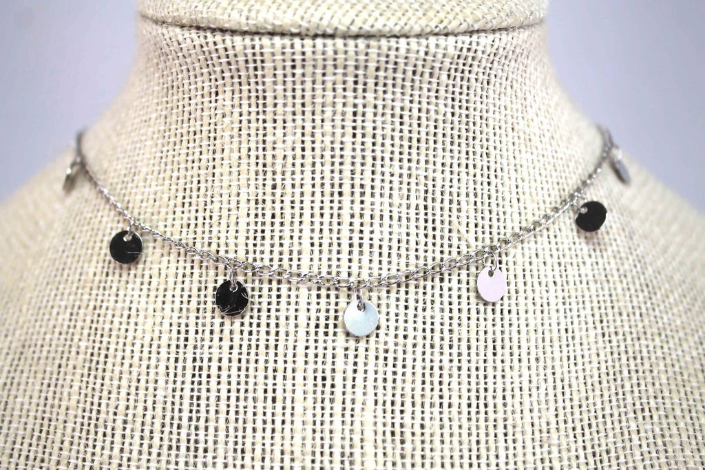 Made-to-order, dangle circle coin chain choker with a 2in extender